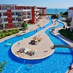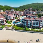 ベッドルーム1室のBeachfront Studio With Sea Views スヴェティ・ヴラスはbeach Sveti Vlas Eastから2.7キロメートル離れた所で、Church "Saint Vlasiy"から車で約10分の場所にあります。